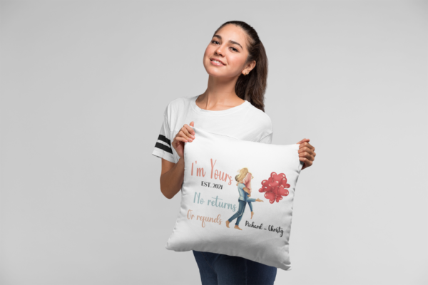 Personalize Valentine Pillow for Couple – “I’m Yours, No Returns or Refunds”